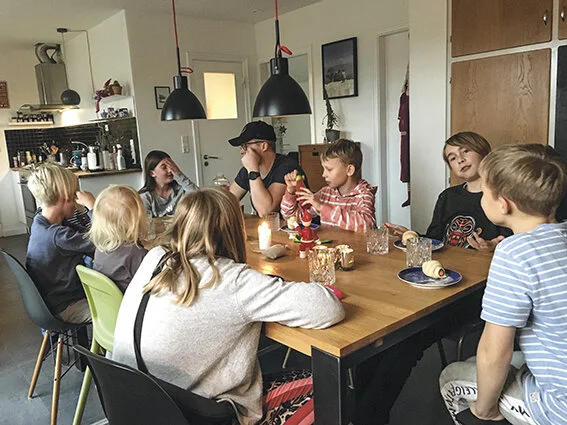 ”Børnene bliver måske i større omfang end andre børn på deres alder ansvarliggjort for, at vi kan få hverdagen til at hænge sammen. Vi har et stort netværk, har tit gæster til aftensmad eller er ude at spise. Det er en del af det liv, vi lever. Livet kører videre, også når Jonas er væk ,” forklarer Hanne Muff Kofoed.